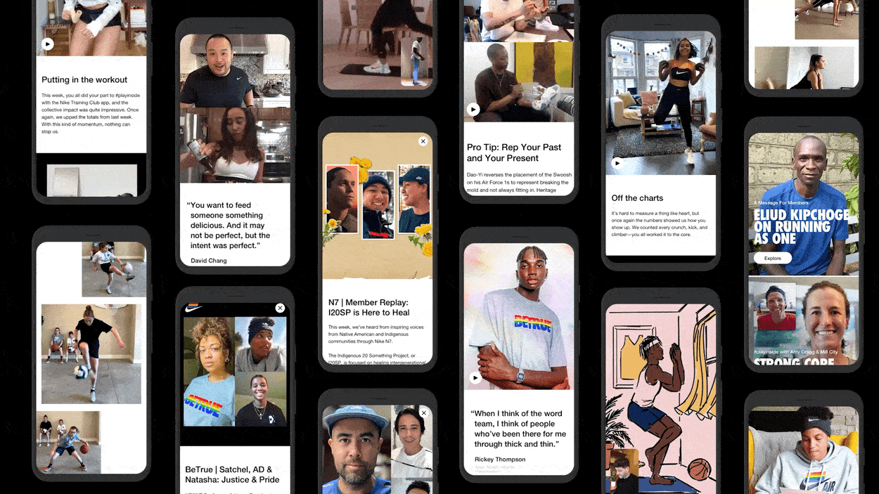 I led a robust team of 15+ writers, strategists, designers, and editors. Together, we formulated, created, and published daily content to help shift Nike Members from resigned to resilient. We did this by portraying larger-than-life figures as real humans dealing with changes in the world and seeking strength just like the rest of us, and by seamlessly integrating brand communication on digital platforms to meet the consumer where they are. From stars like Mj Rodriguez and David Chang to athletes like Alex Morgan and Eliud Kipchoge, YCSU provided a steady cadence of movement, motivation, and hope during a challenging time helping Nike form a deeper relationship with new and current Members.